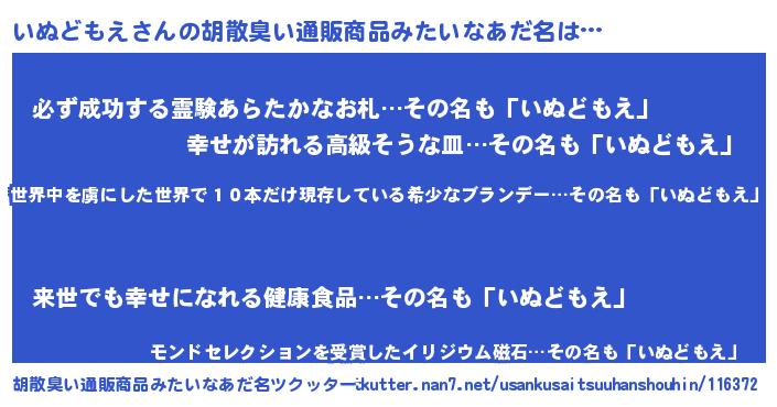 | 意味不明あだ名 | 『住所不定無職いぬどもえ(93歳)』 |