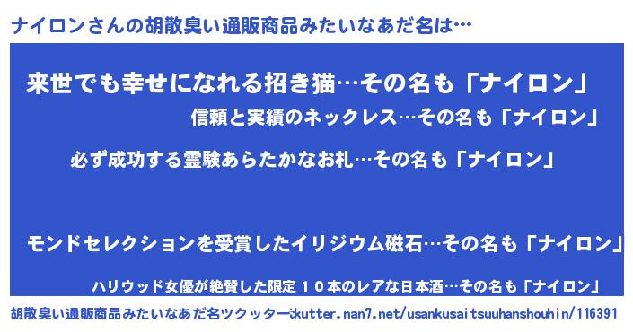 | ヒーロー風カッコイイあだ名 | 『スーパーナイロン』『ネオナイロン』 |