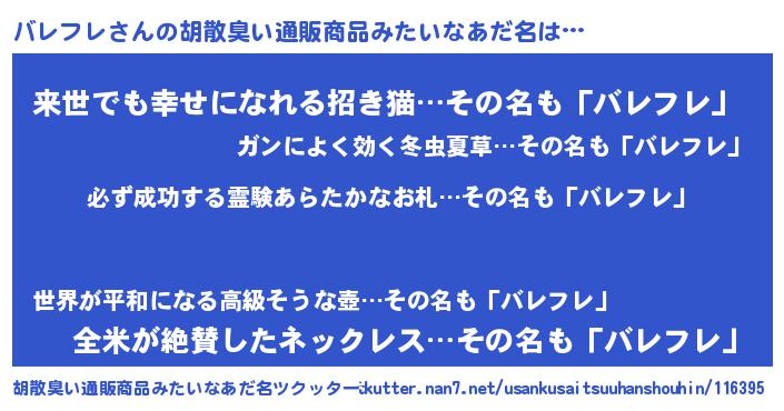 | 恥ずかしいあだ名 | 『プリティーバレフレ』『バレちん』 |
