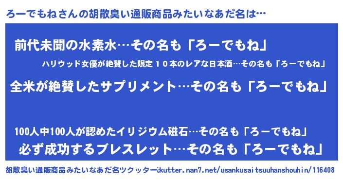 | ヘコむあだ名 | 『ろー太郎』『ろーでもね(遠い目)』 |