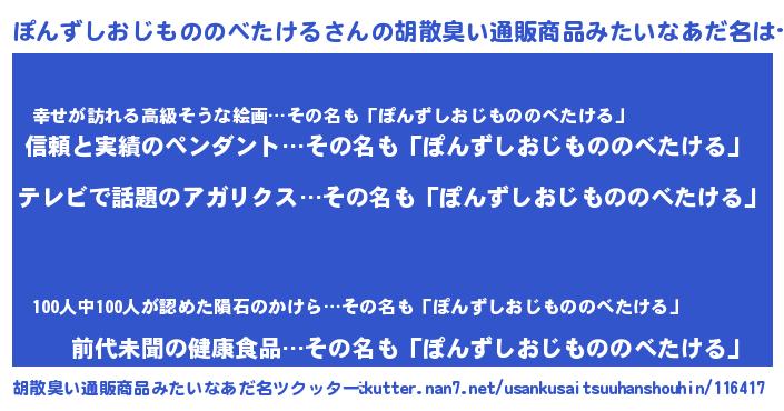 | 恥ずかしいあだ名 | 『ポンズシオジモノノベタケルデラックス』 |