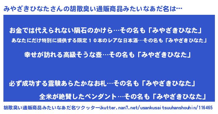 | ファンタジー風あだ名 | 『エターナルミヤザキヒナター』 |