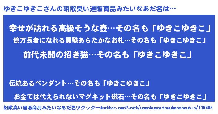 | ファンタジー風あだ名 | 『ユキディッシュ』『ユリユキヴァット』 |