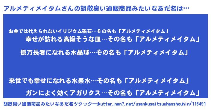 | 男性向けラノベタイトル風あだ名 | 『アルメティメイタムアートオンライン』 |