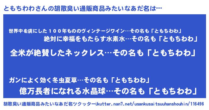 | ポケモン風あだ名 | 『トモゴンZ』『ヒトモチワワ』 |