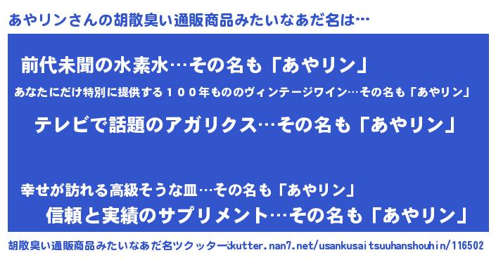| ヘコむあだ名 | 『あやリン(苦笑)』『あやっぺ』 |