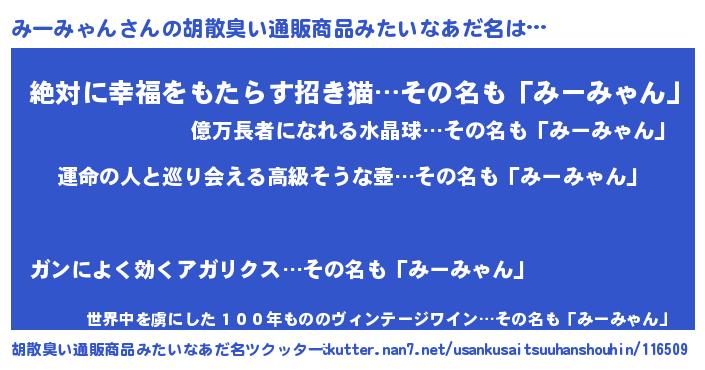 | ヒーロー風カッコイイあだ名 | 『ウルトラみーみゃんマン』 |