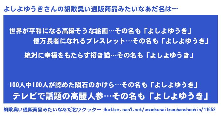 | 意味不明あだ名 | 『永久保存よしよゆうき』 |