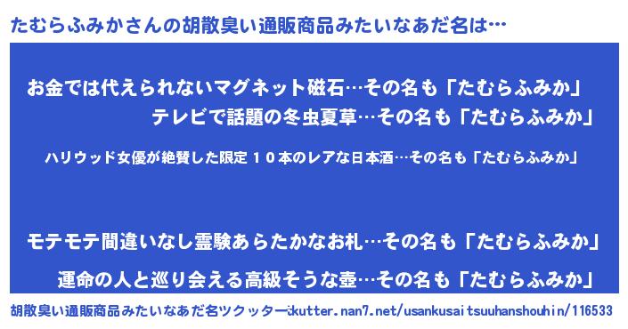 | 意味不明あだ名 | 『住所不定無職たむらふみか(41歳)』 |
