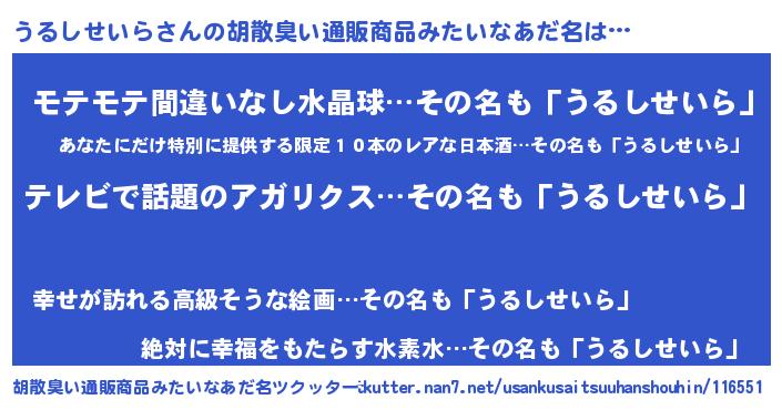| ヘコむあだ名 | 『うるふぇ~』『うるしせいら(笑)』 |
