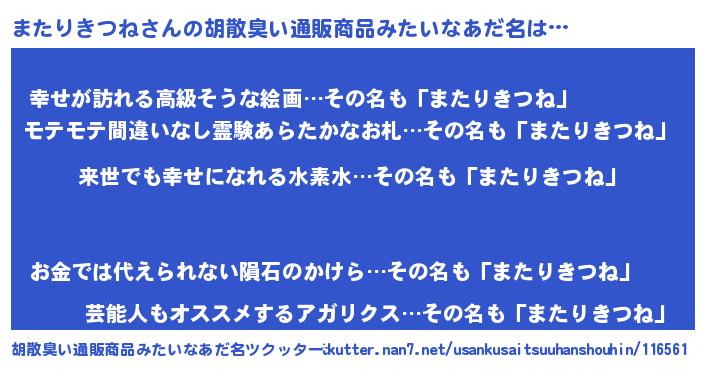 | 意味不明あだ名 | 『永久保存またりきつね』 |