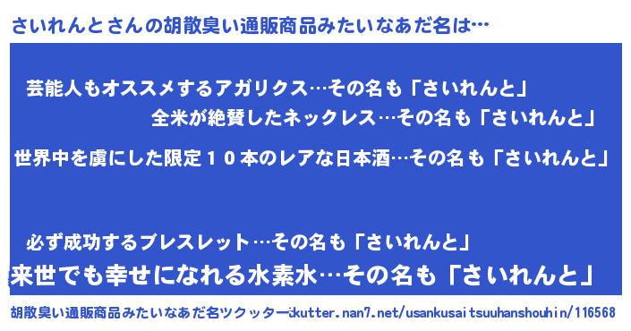 | ヘコむあだ名 | 『さいれんと(笑)』『さいっちょ』 |