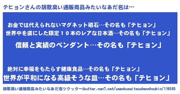 | ヘコむあだ名 | 『テヒぷりん』『豆乳』『テヒふぇ~』 |