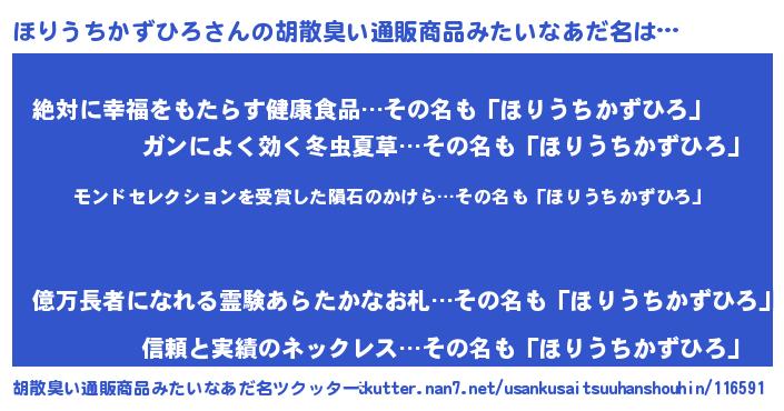 | ヘコむあだ名 | 『ほりうちかずひろ(遠い目)』『ほりっぺ』 |