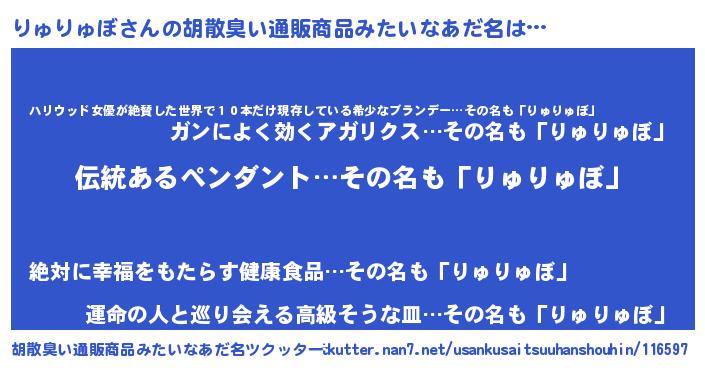 | 男性向けラノベタイトル風あだ名 | 『ダンジョンにりゅりゅぼを求めるのは間違っているだろうか』 |