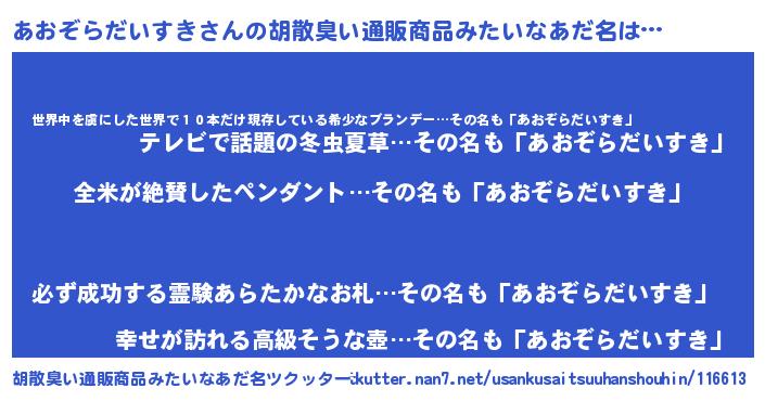| 意味不明あだ名 | 『とにかく怪しいあおぞらだいすき』 |