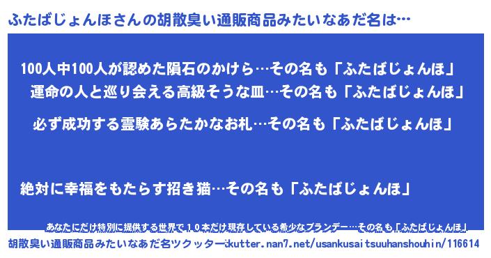| 意味不明あだ名 | 『ペロリンふたばじょんほ』 |