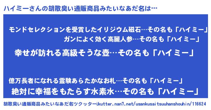| 意味不明あだ名 | 『ハイミーフォーエバー』『自称ハイミー』 |