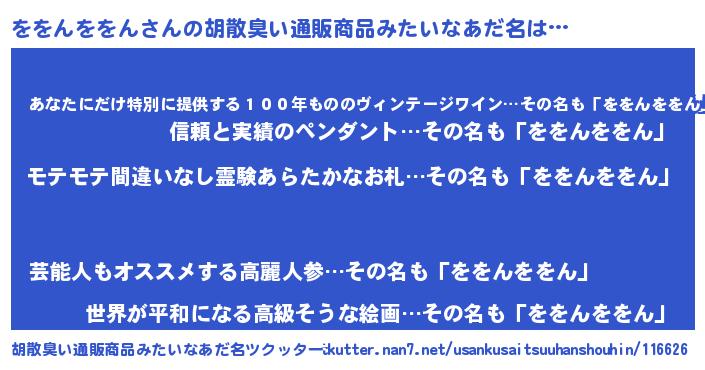| 男性向けラノベタイトル風あだ名 | 『ををんををんの憂鬱』 |