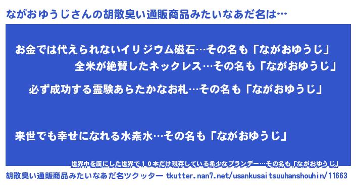 | 伝説のあだ名 | 『伝説のスナイパーながおゆうじ』 |