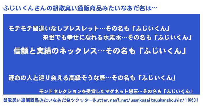 | 男性向けラノベタイトル風あだ名 | 『ダンジョンにふじいくんを求めるのは間違っているだろうか』 |