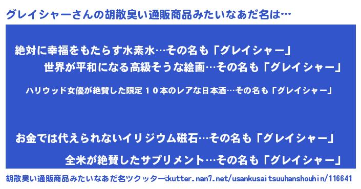 | ヘコむあだ名 | 『グレイシャー(爆)』『グレお』 |