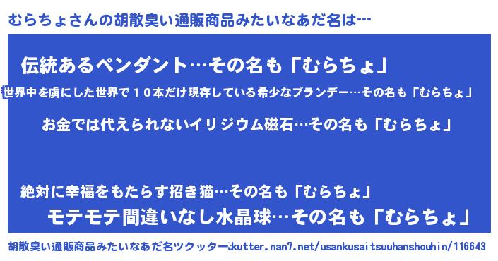 | 意味不明あだ名 | 『眠気覚ましガムむらちょ味』 |