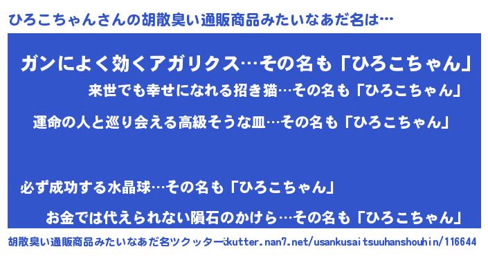 | 意味不明あだ名 | 『ひろこちゃんフォーエバー』 |
