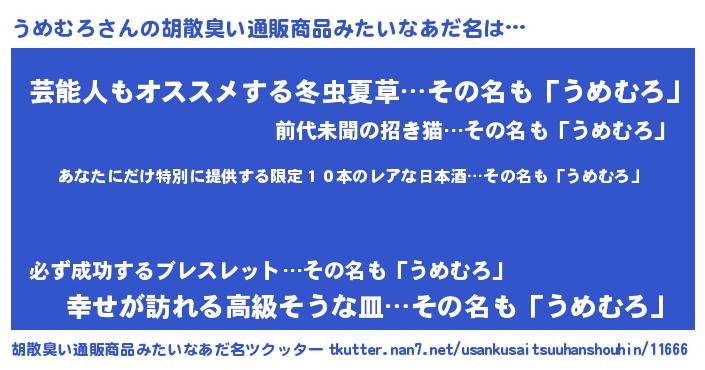 | 意味不明あだ名 | 『住所不定無職うめむろ(41歳)』 |
