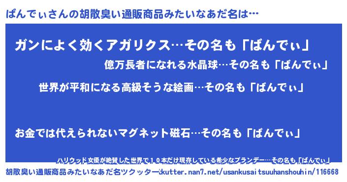 | 意味不明あだ名 | 『ばんでぃフォーエバー』『自称ばんでぃ』 |