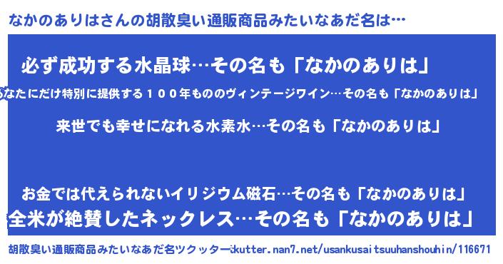 なかのありはさんの胡散臭い通販商品みたいなあだ名をツクッター!