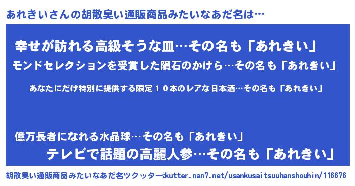 | 意味不明あだ名 | 『住所不定無職あれきい(50歳)』 |