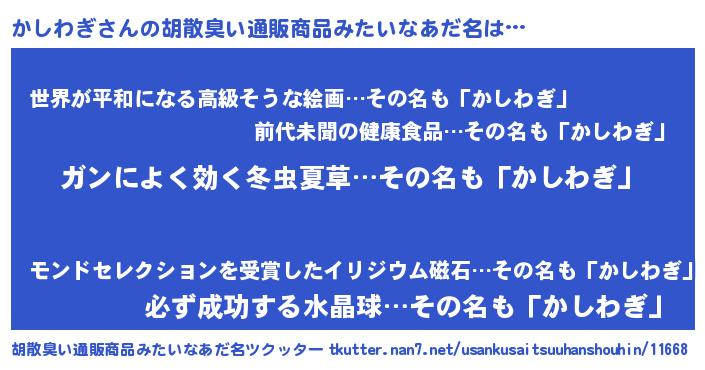 かしわぎさんの胡散臭い通販商品みたいなあだ名をツクッター!
