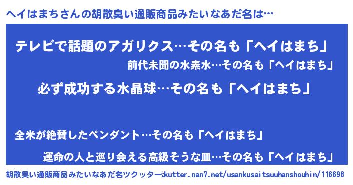 | 意味不明あだ名 | 『ペロリンヘイはまち』『自称ヘイはまち』 |
