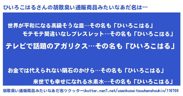 | ヒーロー風カッコイイあだ名 | 『ウルトラ戦士ヒイロコハル』 |