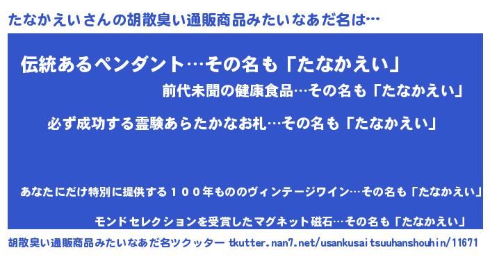 たなかえいさんの胡散臭い通販商品みたいなあだ名をツクッター!