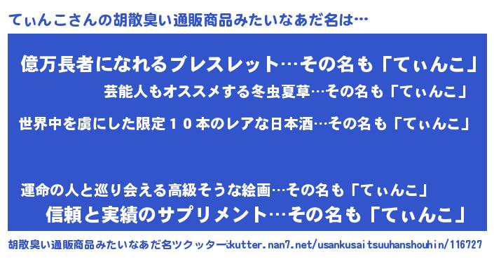 | 意味不明あだ名 | 『住所不定無職てぃんこ(59歳)』 |