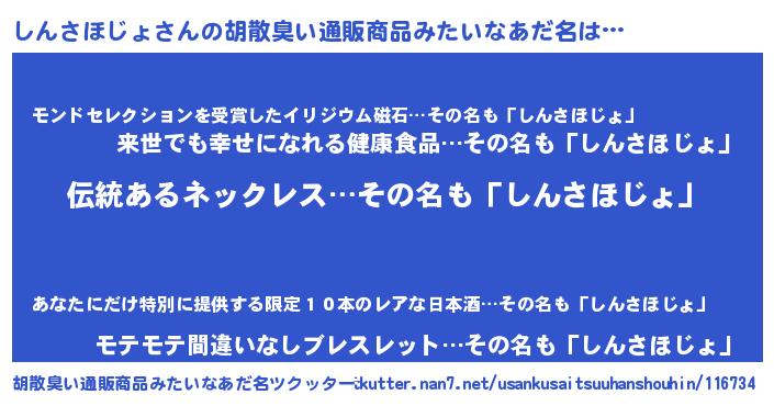 | 欧米人風あだ名 | 『ウサインしんさほじょ』 |