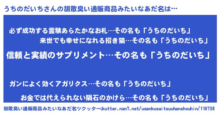 | 意味不明あだ名 | 『とにかく怪しいうちのだいち』 |