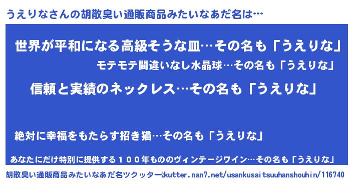 | 意味不明あだ名 | 『とにかく怪しいうえりな』 |