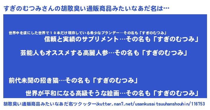 | 意味不明あだ名 | 『自称すぎのむつみ』 |