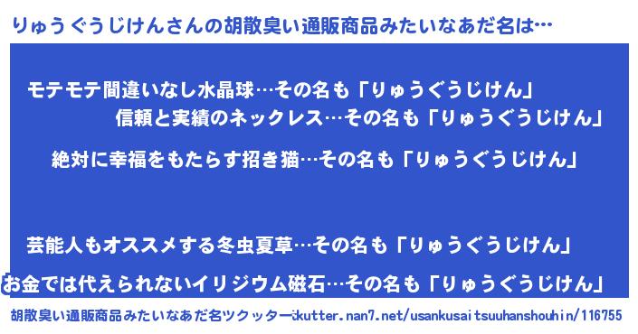 | 意味不明あだ名 | 『永久保存りゅうぐうじけん』 |