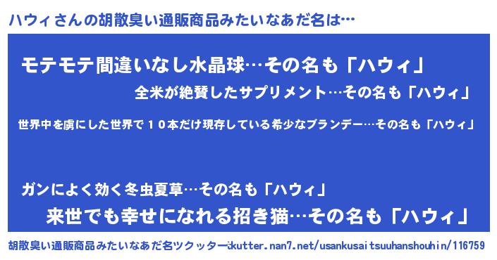 | 意味不明あだ名 | 『住所不定無職ハウィ(81歳)』『自称ハウィ』 |