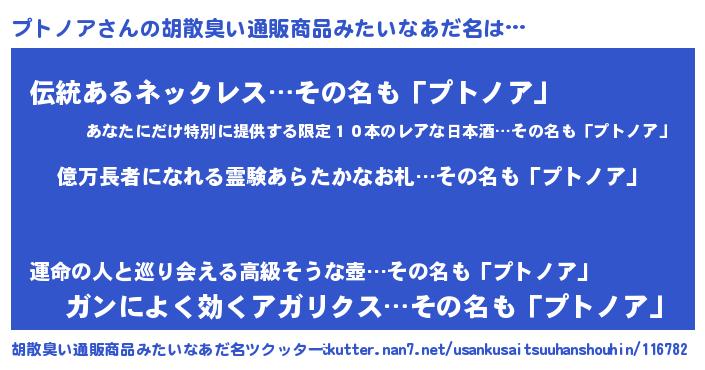 | 意味不明あだ名 | 『ペロリンプトノア』『自称プトノア』 |