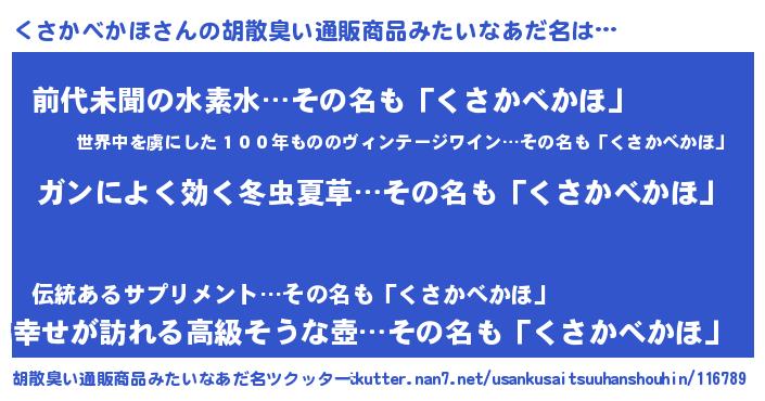 | 意味不明あだ名 | 『自称くさかべかほ』 |
