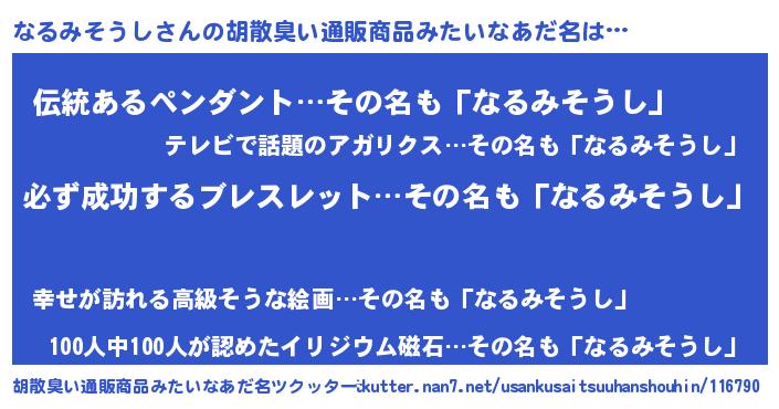 | 肩書あだ名 | 『なるみそうし社長』『なるみそうし班長』 |