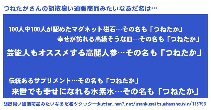 | 意味不明あだ名 | 『自称つねたか』『永久保存つねたか』 |