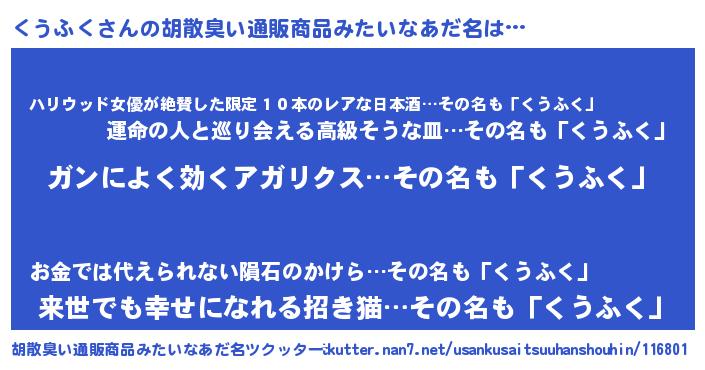 | 意味不明あだ名 | 『自称くうふく』『永久保存くうふく』 |