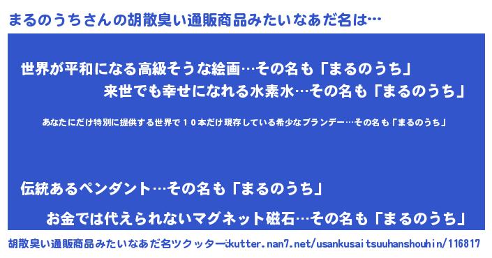 | 男性向けラノベタイトル風あだ名 | 『まるのうちに滅ぼされるだけの簡単なお仕事です』 |