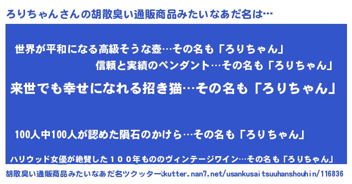 | 意味不明あだ名 | 『永久保存ろりちゃん』 |